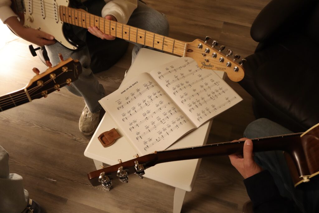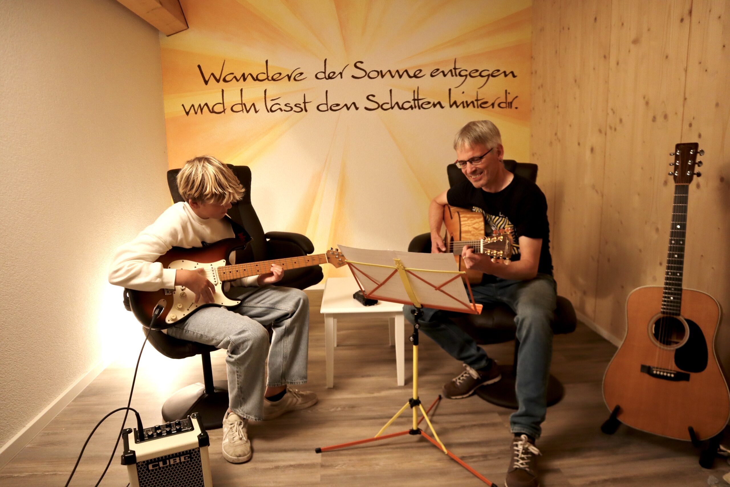 Unterricht Für akustische und elektrische Gitarre sowie UkuleleIndividuell auf deine Wünsche zugeschnittenSystematischer Aufbau der spielerischen FähigkeitenTheorie und musikalisches Hintergrundwissen Kostenlose Probelektion Abo-Preise 3 Monate 10 Lektionen in drei Monaten, wöchentlich unter Berücksichtigung der Ferien.fester Wochentag & UhrzeitAbrechnung quartalsweisegilt für Kinder, Jugendliche und Erwachsene10×45 Min. CHF 600.- Flexible Lektionen 10er-Karte, 45 Min. (gültig 1 Jahr)CHF 650.-5er-Karte, 45 Min. (gültig 1 Jahr)CHF 350.-